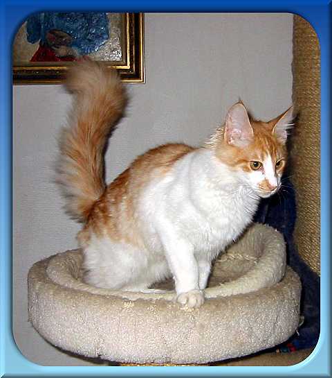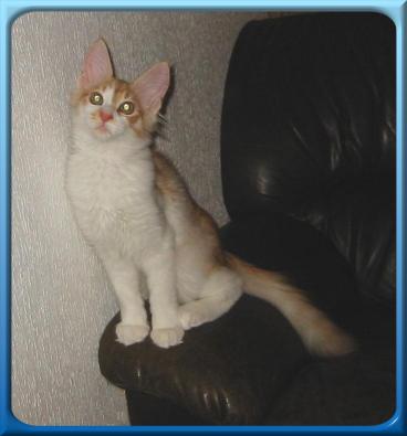 | Findus von Morija ist am 13.07.2002 geboren. Er hat eine wundervolle helle red smoke + weisse Farbe mit einem tollen Weissanteil. Sein Fell ist wunderbar seidig ohne jegliche Unterwolle. Findus vereint in sich sehr wertvolle alte Türkisch Angora Linien und einen sehr guten Typ. Ein ganz herzliches Dankeschön an Familie Pott für diesen wunderschönen Kater. | |