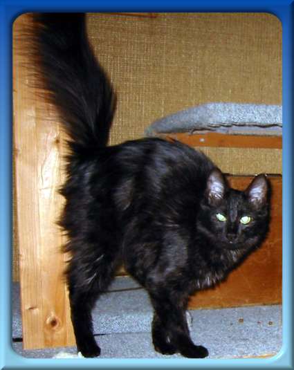 Antioch Hallie Berry ist Ende Oktober aus Ohio/USA wohlbehalten in Frankfurt angekommen. Ich sage ein herzliches Dankeschön für diese liebe und schöne Katze an Kitty Goodwin Cattery "Antioch". "Berry" hat einen super Stammbaum mit den besten amerikanischen Linien. Ich bin gespannt auf ihren Nachwuchs mit Dschadi's Riff Raff in 2002! |