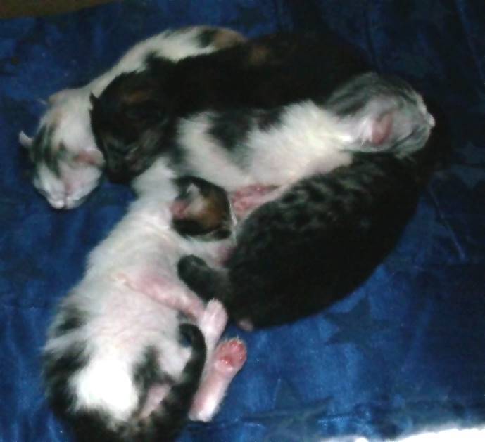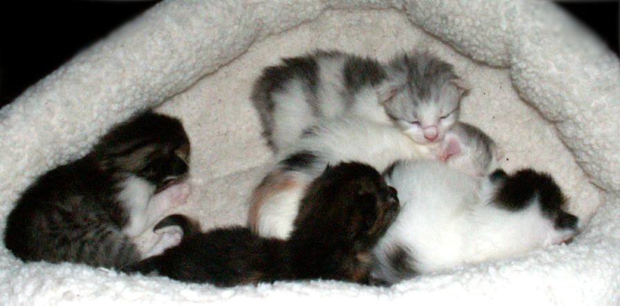 | Dies sind die zweiten und letzten Katzenbabies von meiner schönen Maria. Sie wird im Herbst kastriert und sucht dann ein tolles neues Zuhause, gerne mit einem ihrer Kitten. - This is the second and last litter from my beauty Maria. My vet will neuter her in Autumn and then I look for a nice pet home for her and it would be nice if she will find a place together with one of her kitten. | |
